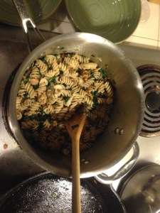 Pasta in a sausage and kale cream sauce